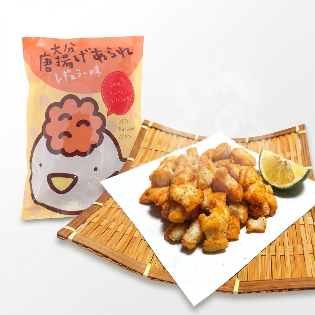 大分唐揚げあられ、レギュラー味。香ばしさとジューシーな味わいが楽しめる絶品の一品です。大分県の名物である唐揚げを、あられの形にアレンジしました。一粒一粒に大分唐揚げの香りが広がり、一度食べたらやみつきになること間違いなしです。おつまみやお菓子としてはもちろん、お弁当のおかずやおつまみとしてもおすすめ。パーティーやおもてなしの際にも華やかさを演出できる一品です。贅沢な味わいを、ぜひご堪能ください。