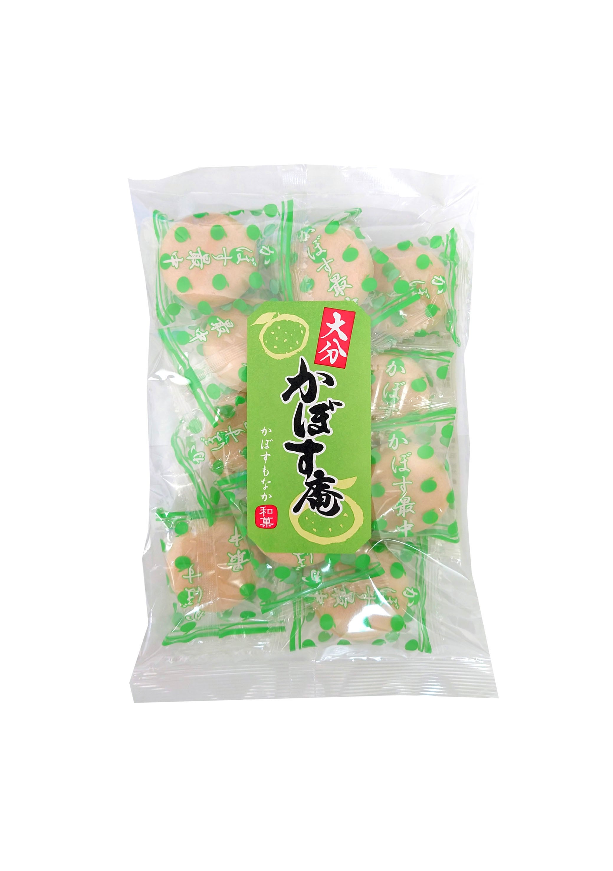 【原材料名】生あん(国内製造)、砂糖、水あめ、もなか皮(もち粉、でん粉、植物油脂)、還元水あめ、かぼすパウダー(デキストリン、かぼす果汁)/ソルビトール、香料、クチナシ色素、増粘多糖類