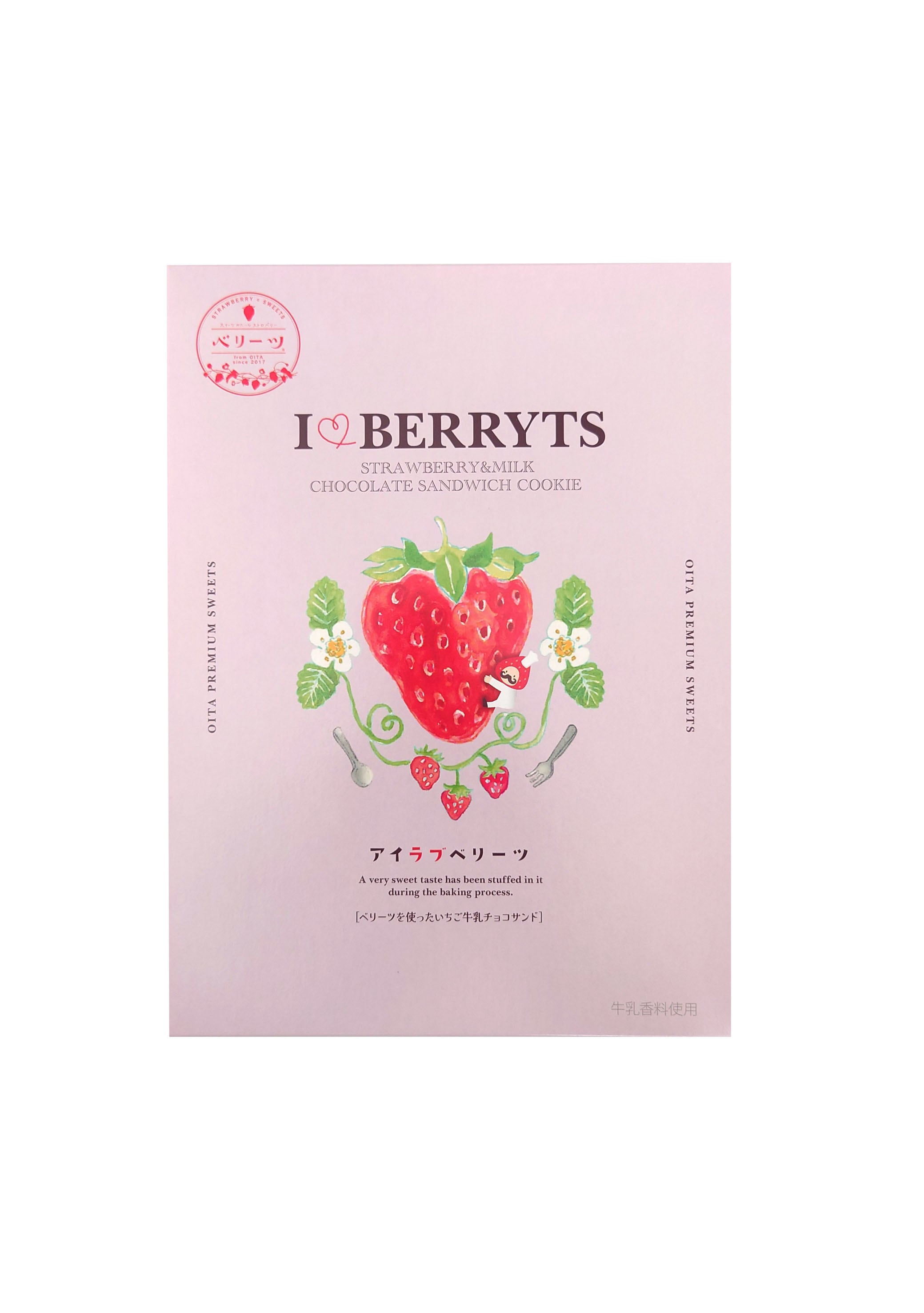 【原材料名】準チョコレート(植物油脂、乳糖、砂糖、全粉乳、ココアパウダー)(国内製造)、小麦粉、砂糖、鶏卵、澱粉、植物油脂、粉末油脂、イチゴパウダー(イチゴ(大分県産ベリーツ))/膨張剤、乳化剤、香料、ソルビトール、カゼインNa、着色料(ビートレッド、紅花赤、カロチン)、酸化防止剤(トコフェロール)、(一部に小麦・卵・乳成分・大豆を含む)本品製造工場では、落花生を使用した製品を製造しています。